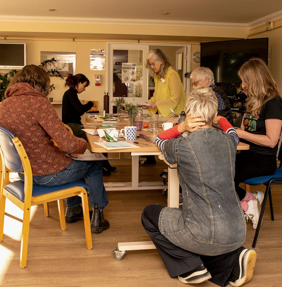 The workshop provides space for personal reflection on life and death through conversation and creative expression, exploring themes of place and remembrance.